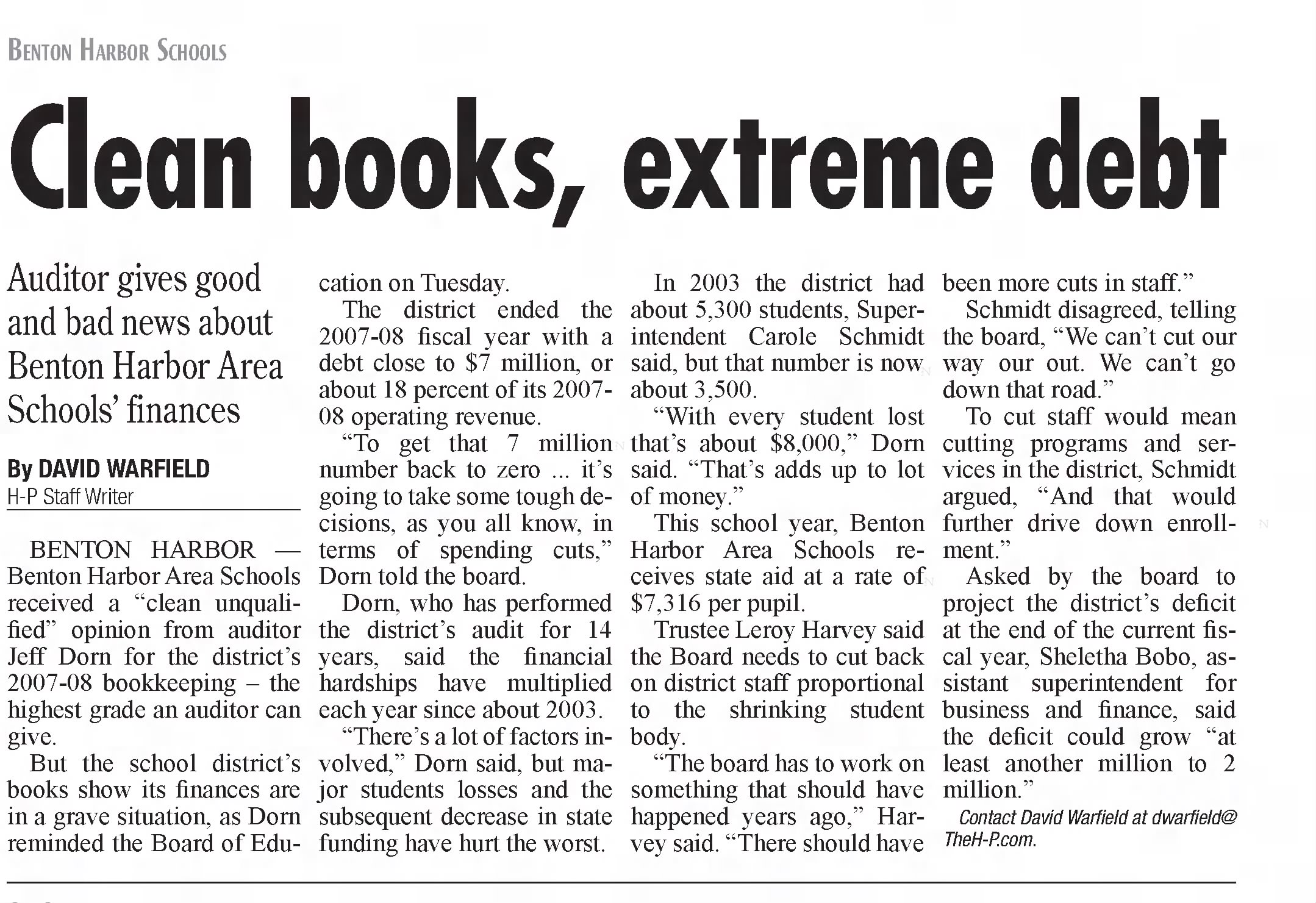 If Benton Harbor Area Schools is to survive it must shed a minimum of 100 positions immediately and take aggressive action to divest from non revenue generating real estate. The 2021 Federal bailout was an amazing gift that the district is poised to burn through in just a few short years.