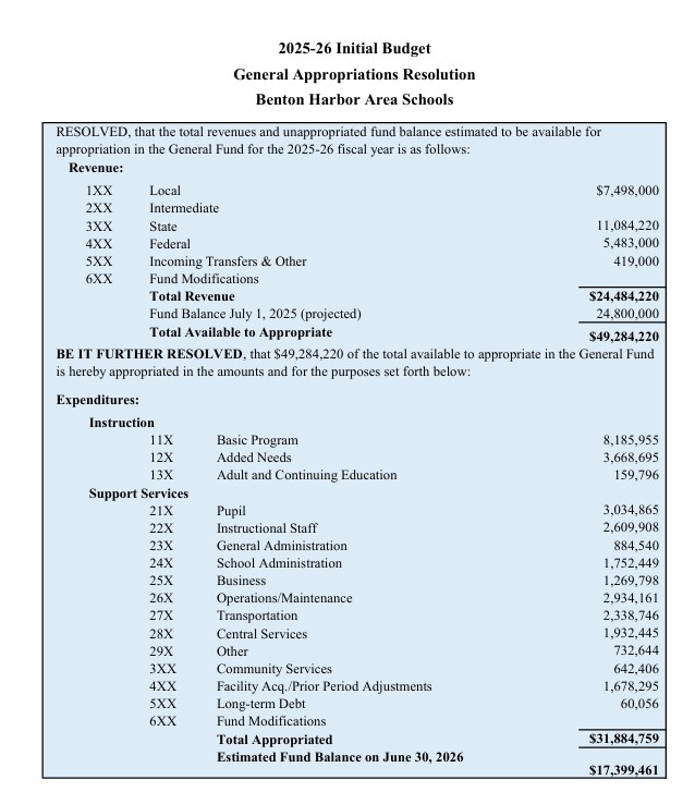 Benton Harbor doesn’t need to go this deep. They could go half way and still be fine, but they won’t because even getting halfway to the staff/student efficiency of competing districts would be seen as too drastic of a cut. The school system is a bloated bureaucracy and bureaucracies protect themselves. Recently they evaluated eliminated 30 positions to address the budget, but this was met with pushback as some board members believe that cutting staff when the district “has money” is the wrong thing to do. A Minimum of 100 spots, not 30, need to be cut before the start of the 2026-27 school year, and it will not happen.