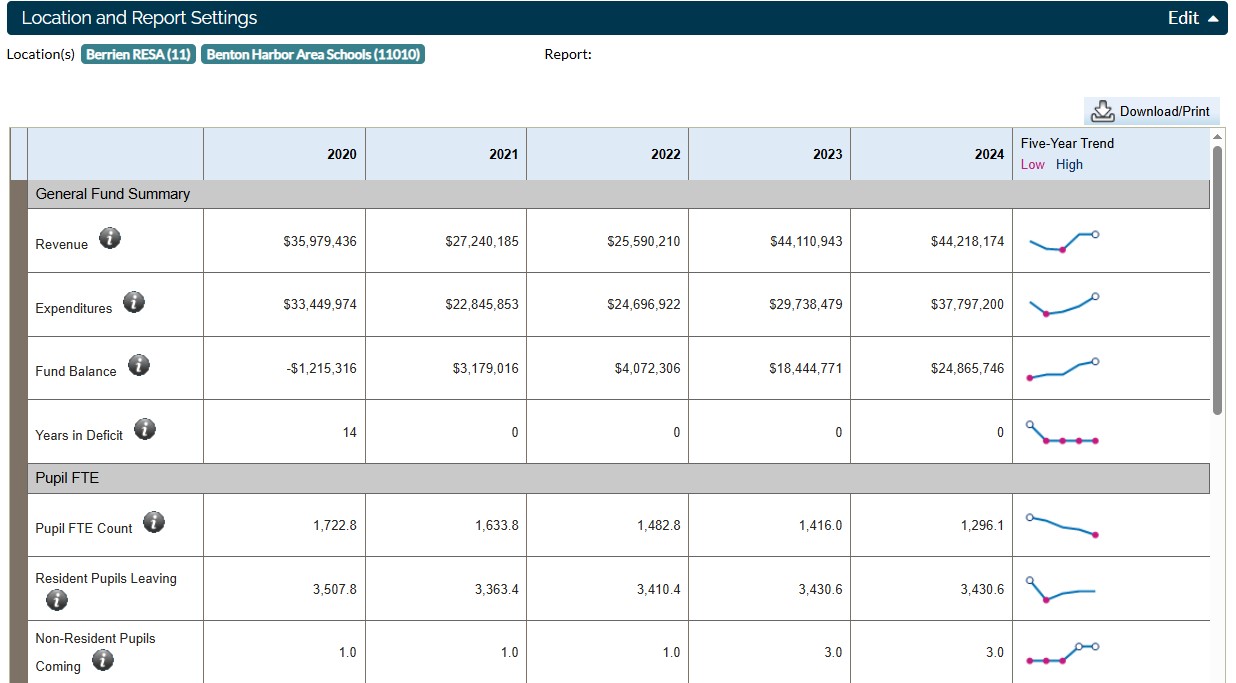 Benton Harbor Area Schools is likely headed for bankruptcy in 3 years, but no one is sounding the alarm. Maybe we have gotten so used to BHAS having financial difficulty. Maybe the Federal and State post COVID bailouts have made us too comfortable. Maybe no one is paying attention. It could be all of the above. With current trends in 3 years Benton Harbor Area Schools will have enrollment below 1,000 children and will have fully exhausted its general fund while running a substantial deficit.