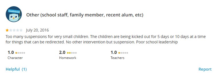 If these stats are accurate I could see parents of students who were suspended deciding to take their children elsewhere upon believing that either the bar for suspension is very low or that their child was being singled out.