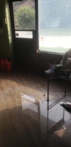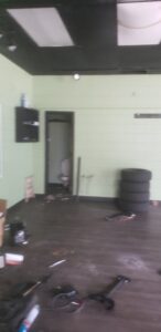 Deep clean: After the barber shop closed down, a previous tenant was storing his junk in there and he also had several animals. The previous tenant did remove a lot of his personal belongings, and vacated about a month after we closed on the property. The pictures above were taken during our showing of the property prior to buying it. The floor was salvageable, but needed some deep cleaning.