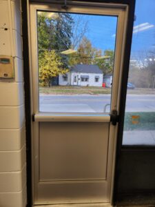 We were advised to contact a window company and the commercial window company that replaced 9 windows for us earlier in the year did a great job and their pricing was very reasonable. We asked them for a quote and when we received it there was some sticker shock. $3,300 to replace it. I figured this as the “we don’t want to do this price” and we looked elsewhere. We had 2 separate companies ghost us and we went back to the original company, bit the bullet and agreed to pay the $3,300. Ouch. There was also a long delay because the door needed to be custom made and the contractor had a large new construction job going on.
